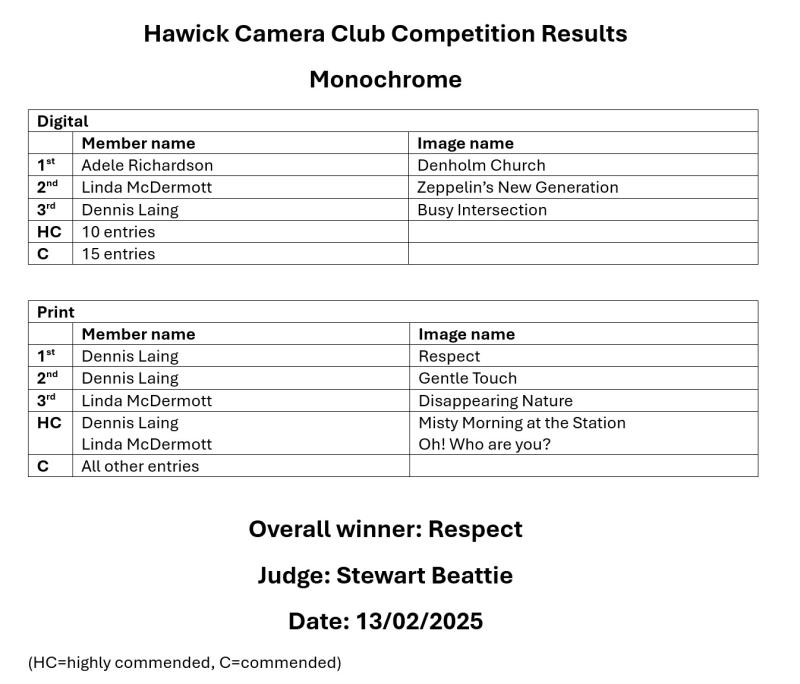 Monochrome Competition results